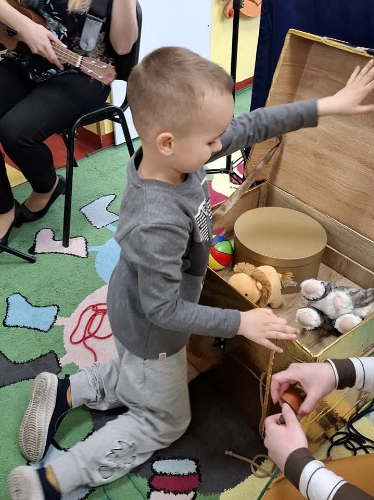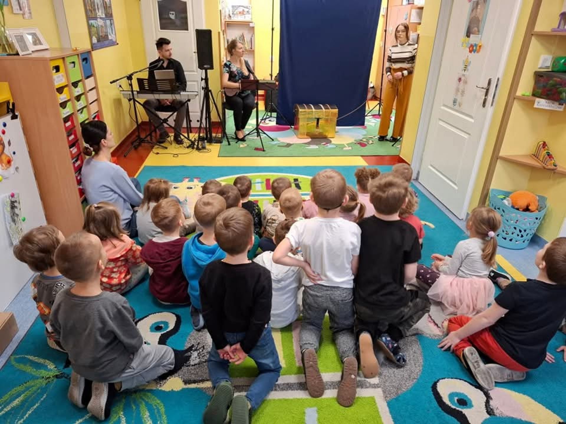W marcu, naszym przedszkolu odbył się wspaniały koncert pt. "Zaczarowany Kufer". Pani Sylwia, przeniosła nasze przedszkolaki do zaczarowanego świata. Dzieci brały czynny udział w przedstawieniu, co ma pozytywny wpływ na ich rozwój społeczny.