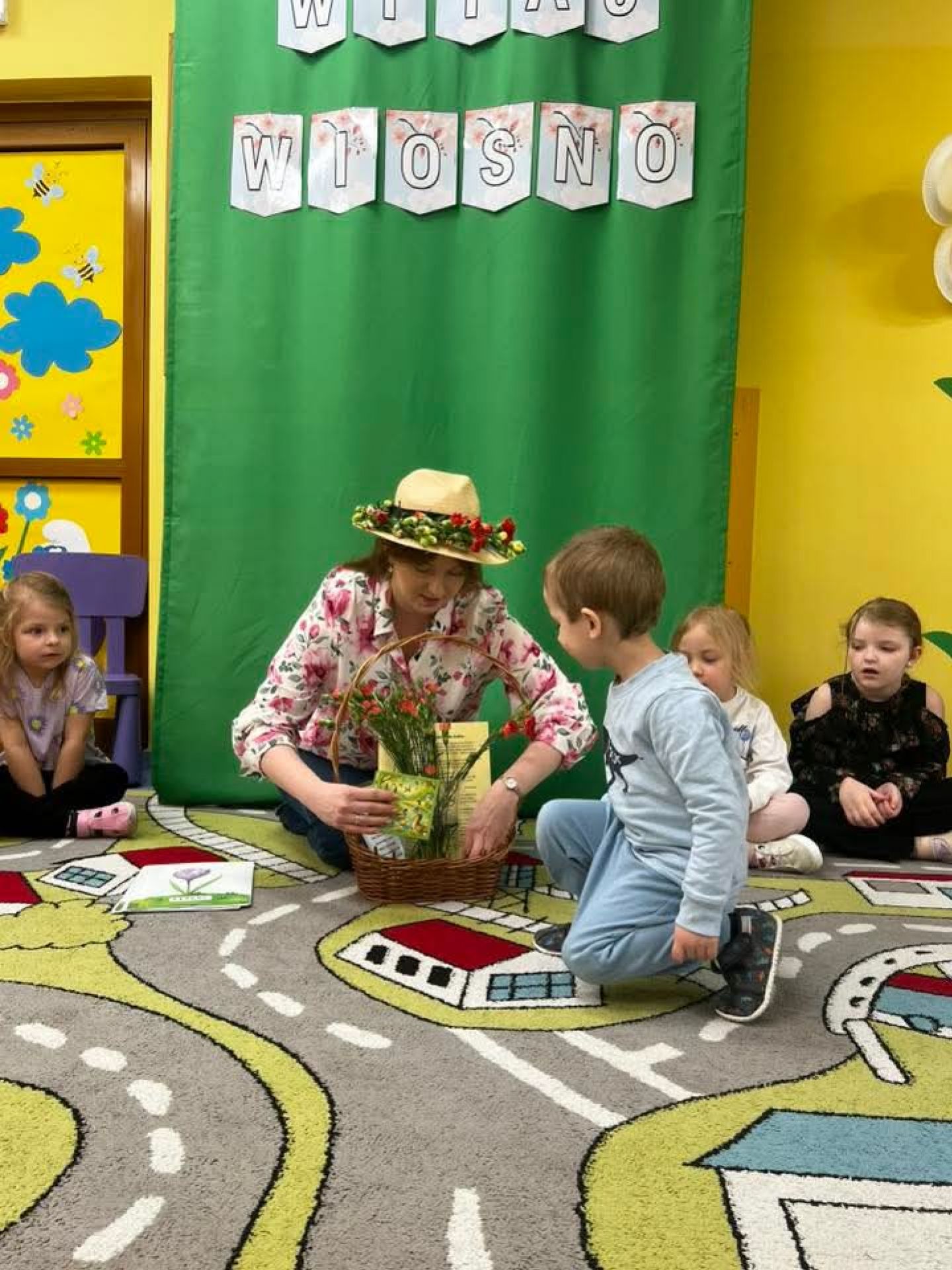 Dziś w naszym przedszkolu radośnie powitaliśmy Panią Wiosnę. Dzieci brały udział w wiosennych zabawach, wykonywały kolorowe prace plastyczne, wysłuchały opowiadania, poznawały pierwsze wiosenne kwiaty i ptaki przylatujące z ciepłych krajów.