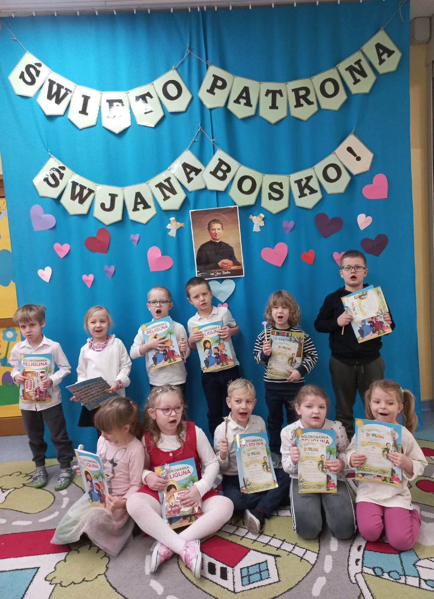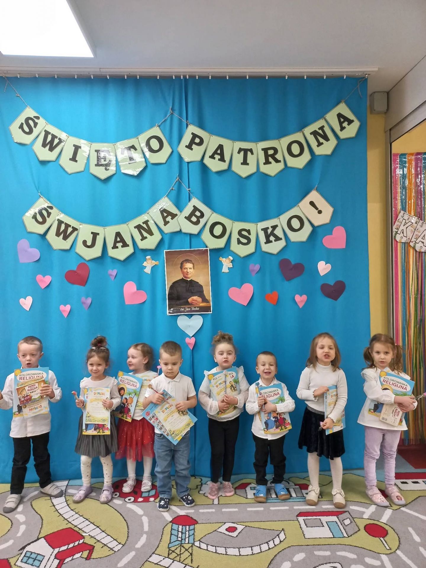 Ten wyjątkowy dzień był pełen uśmiechu, wspólnej modlitwy i radosnych zabaw. Dzieci poznały postać św. Jana Bosko – przyjaciela najmłodszych, który uczył, jak być dobrym, życzliwym i pomocnym.
