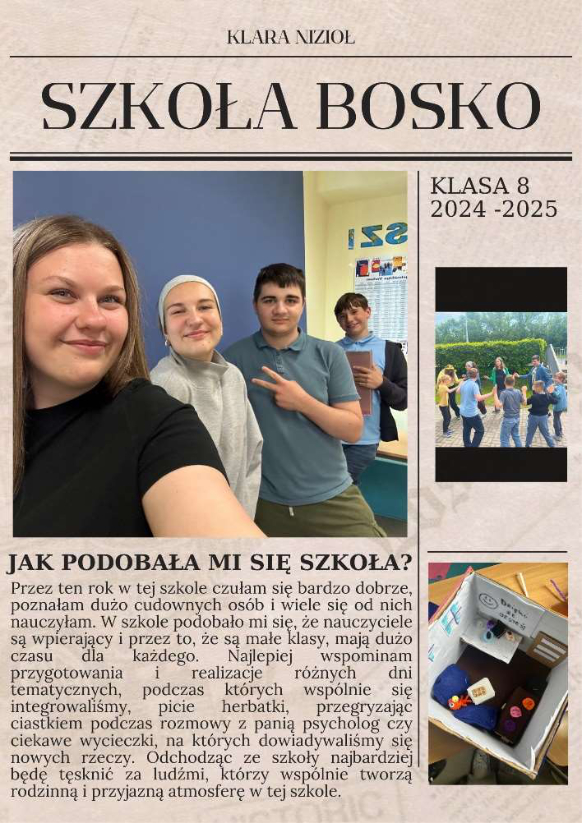 Myśli świętego Jana Bosko towarzyszą nam każdego dnia i w duchu wartości, jakimi są: religia, miłość, rozum - te trzy - wychowujemy dzieci na dobrych, szczęśliwych i świadomych ludzi. Dowodem na to, niech będą wypowiedzi naszych uczniów - absolwentów - co sądzą o szkole św. Jana Bosko?