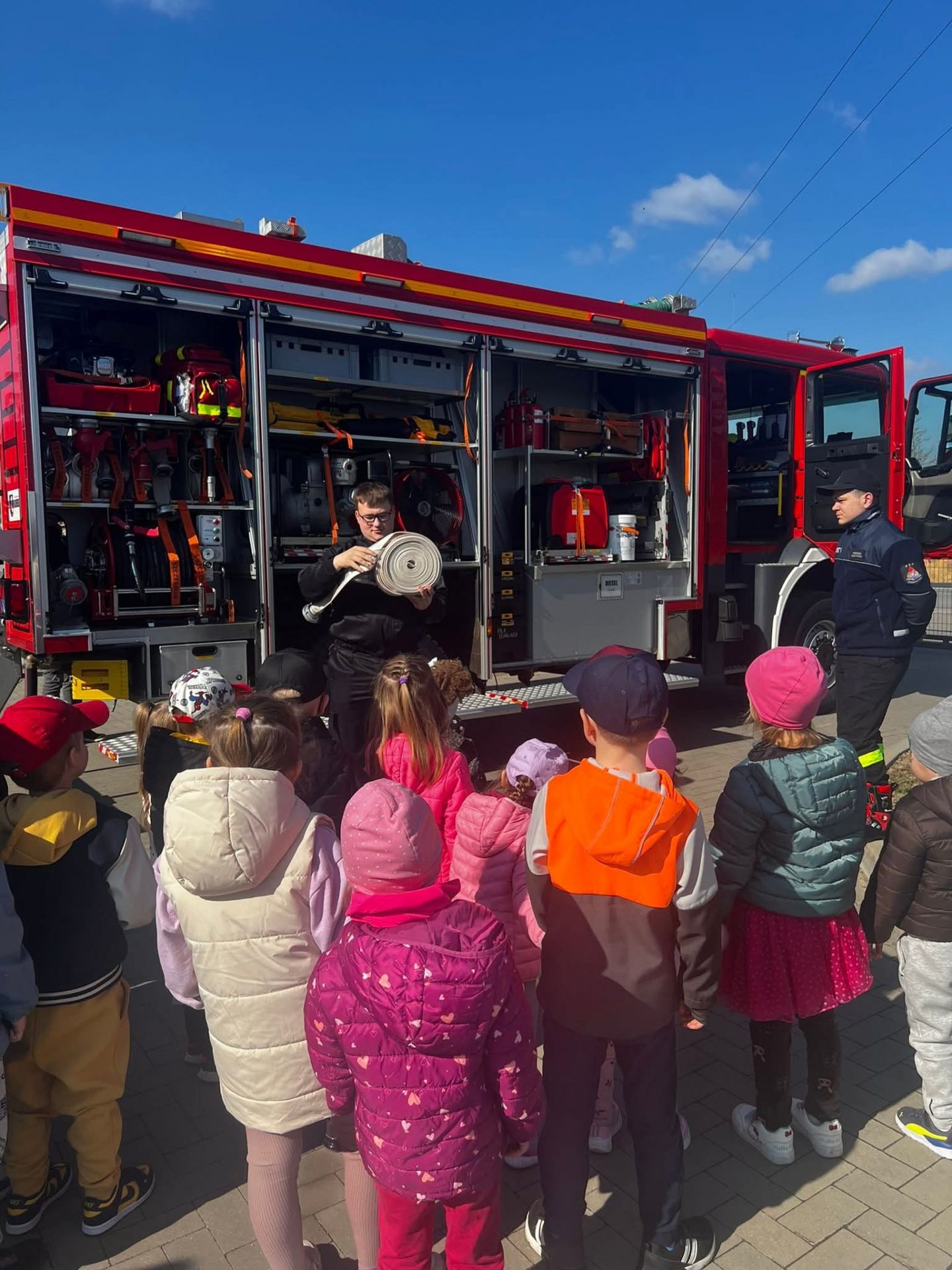 Dzieci dowiedziały się, na czym polega praca strażaka i jak wygląda ich codzienna służba. Strażacy opowiedzieli o swojej pracy, pokazali sprzęt używany podczas akcji ratunkowych.